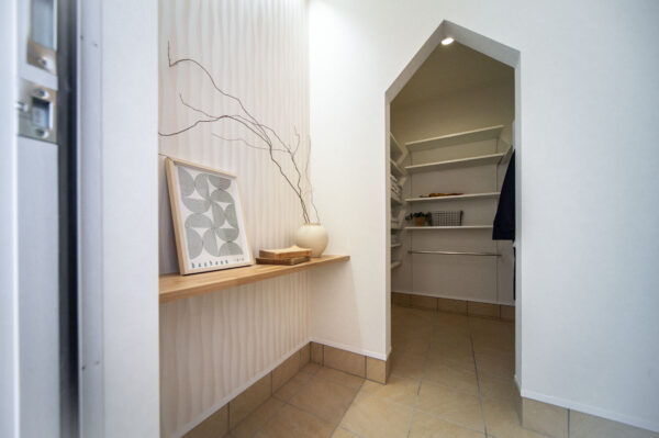 玄関脇のシューズクロークやファミリークローゼットの他、お出かけ前やただいまの際に使いやすい位置にある洗面など、暮らしの動線も追求された間取りです。