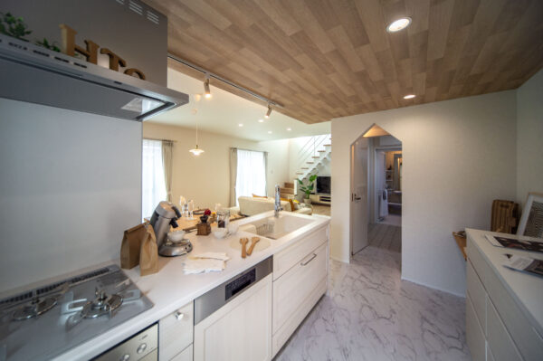 住宅設備は最新の高性能モデルを採用。お洗濯後の時短として衣類乾燥機「乾太くん」や、使い勝手の良い深型食洗機が付いたキッチンの他、電気自動車の充電ができる設備も搭載しました。災害時は車の電気を家電用に利用することができるハイスペックモデルとなっています。